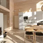 Hier finden Sie auch Küchenzeile mit einem Kühlschrank und Küchenutensilien. Von der Villa in Äkäslompolo sind es 54 Minuten mit dem Auto zum Flughafen Kittila.
